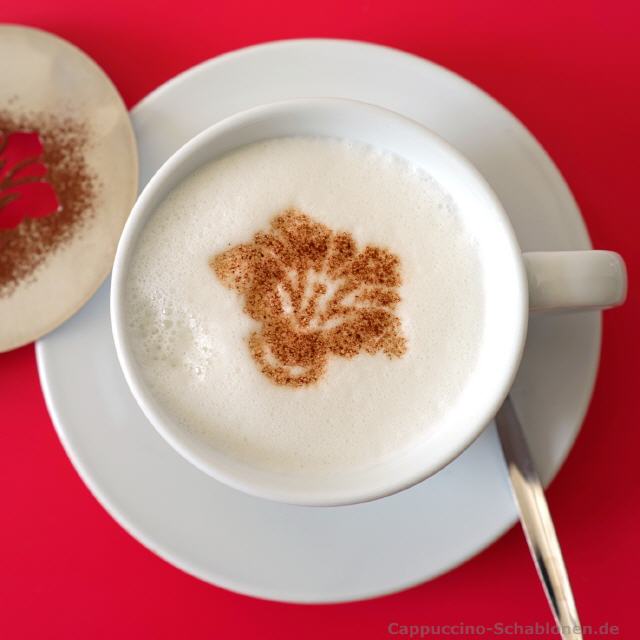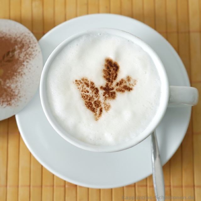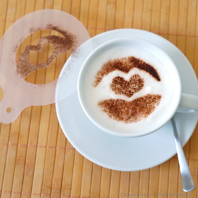 Allein das Bild eines perfekten Schablonenabdrucks aus Kakao auf cremigem, feinporigem Michschaum macht Lust auf einen leckeren Cappuccino oder Latte Macchiato, den man gerne in Ruhe oder in netter Gesellschaft genießt.