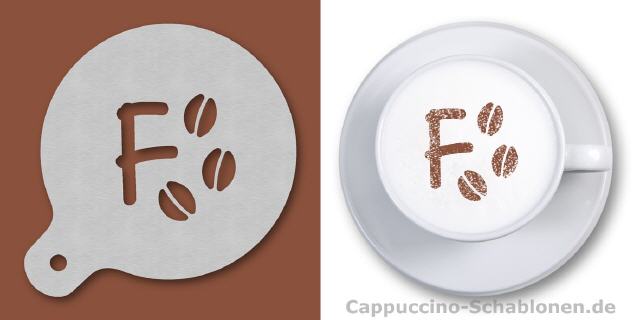 Sie sind hier: Cappuccino-Schablonen.de - Ihre individuelle Kaffeeschablone » Schablonen 4 » Cappuccino-Schablonen F Cappuccino-Schablonen F Individuelle Cappuccino-Schablonen mit F