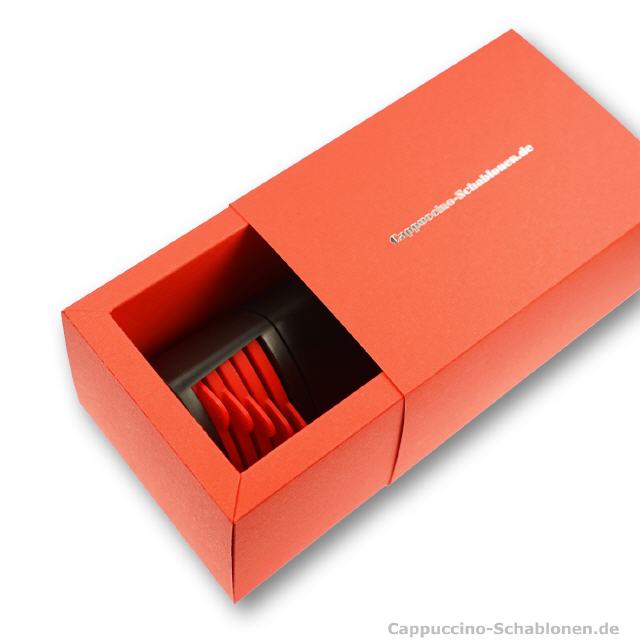Gerne bieten wir Ihnen praktische Kakao- und Cappuccino-Streuer mit individueller Streuschablone an.